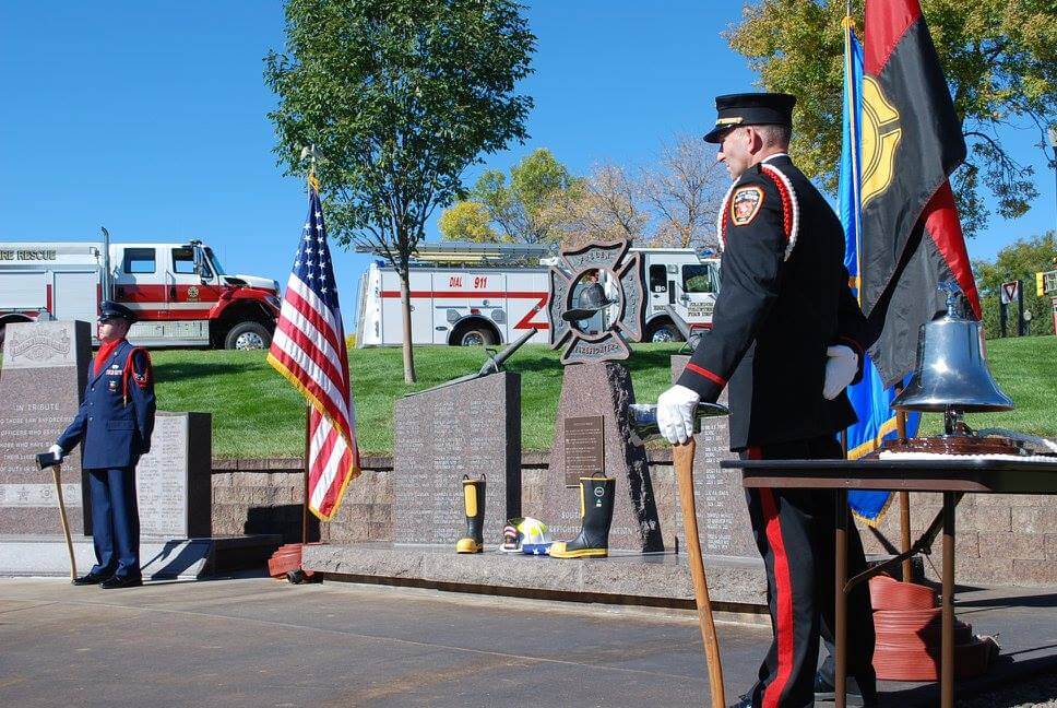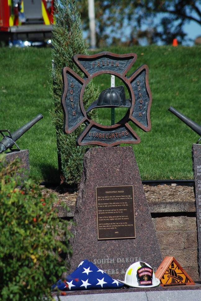The Fallen Fire Fighters Memorial was built to honor all firefighters that have died in the line of duty. The Memorial is engraved with the names of all Firefighters who have died in the Line of Duty protecting the people and property of South Dakota. An annual memorial service is held every fall (late September/early October), most generally the weekend prior to the start of National Fire Prevention Week. Please see our event calendar on the home page for details.